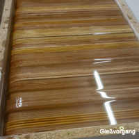 - Alle 7-9h ein weiterer Guss mit insgesamt 3-4 Litern Gemisch, was etwa 1cm Schichthöhe ergab (Luftblasen wurden mit Heißluft entfernt).